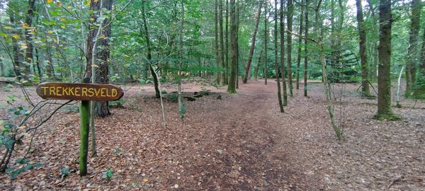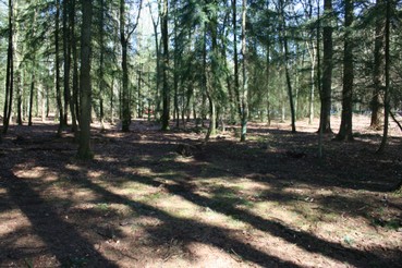 Middelgroot langwerpig veld met een eigen stookplaats en redelijk veel bomen.