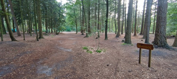 Het terrein is voor groepen van ongeveer 40 pers. Hier kunnen enkele grote tenten opgezet worden. Duidelijk afgescheiden van het sportveld door een bomenpartij.